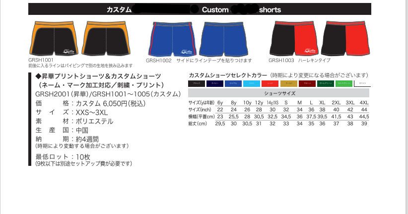 ※全面昇華プリントの完全オリジナルショーツは現状ではGriffinTeam製のみの取り扱いです