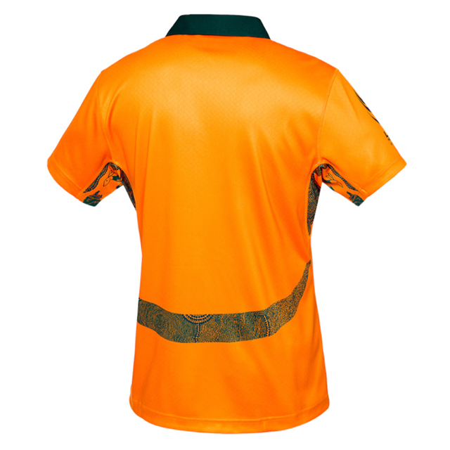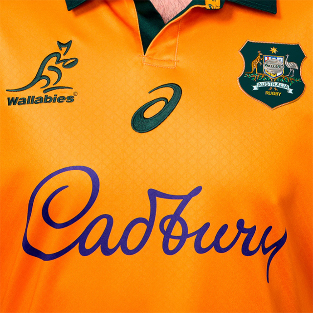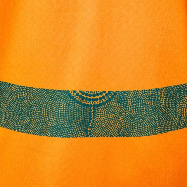 脇から背中にかけて、先住民アボリジニの伝統的なアート柄が美しく施されています。さらに、ワラビーズとライオンズの両チームロゴが向かい合った限定デザインがサイドに刻まれており、歴史的な対戦を象徴しています。