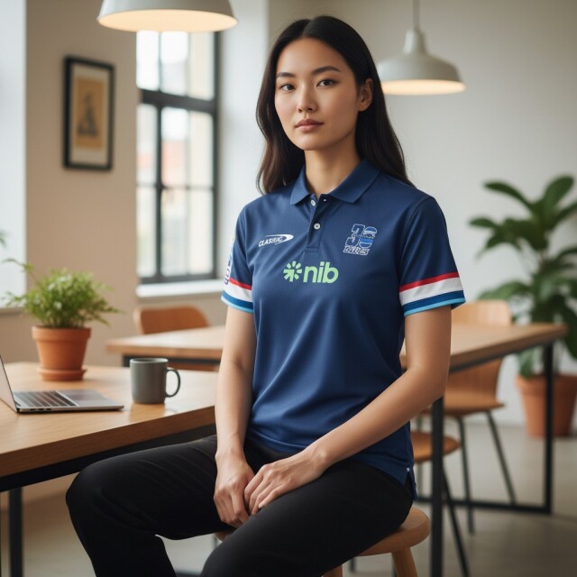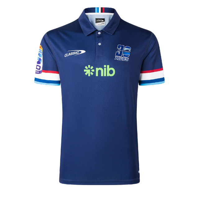 公式クラブとスポンサーのブランディングを施した 2026 ブルース チームポロ。
