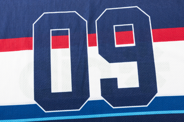 背面の「09」は、ブルースのホームグラウンドを称えるものだ。オークランドの象徴的な市外局番に大胆なローカルタッチで敬意を表している。