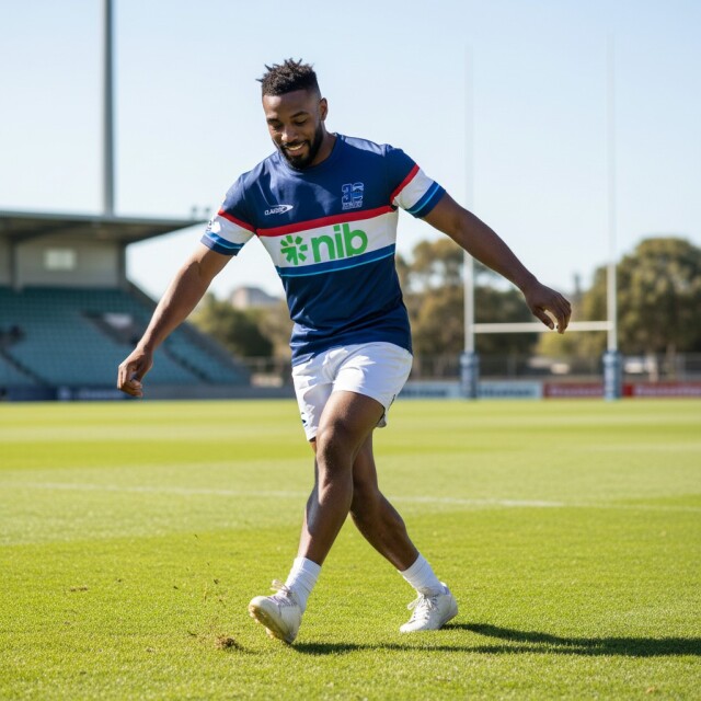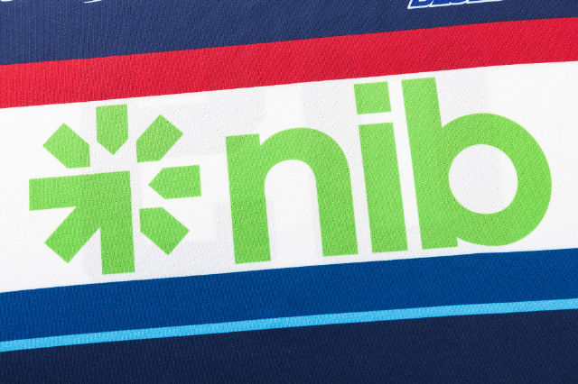 公式 2026 ブルース プロ トレーニング Tシャツは、目を引くスポンサーアクセントと印象的な胸元のストライプが特徴で、大胆な存在感を主張する。