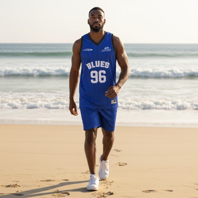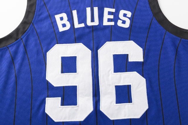 このヴィンテージにインスパイアされたバスケットボールシングレットは、大胆な 「BLUES 96」 グラフィックとスターサイドパネルが特徴だ。