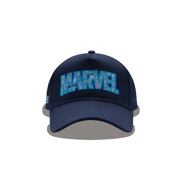 正面にマーベルロゴ、サイドにチームロゴとメーカーロゴが刺繍で入っています。