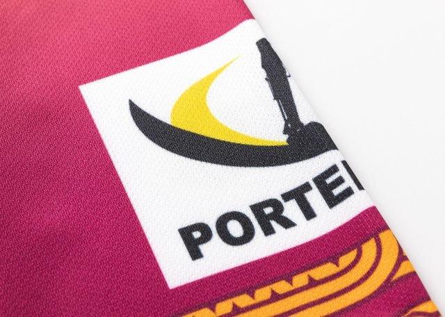 チームロゴとメーカーロゴは刺繍でスポンサーは昇華プリントです。