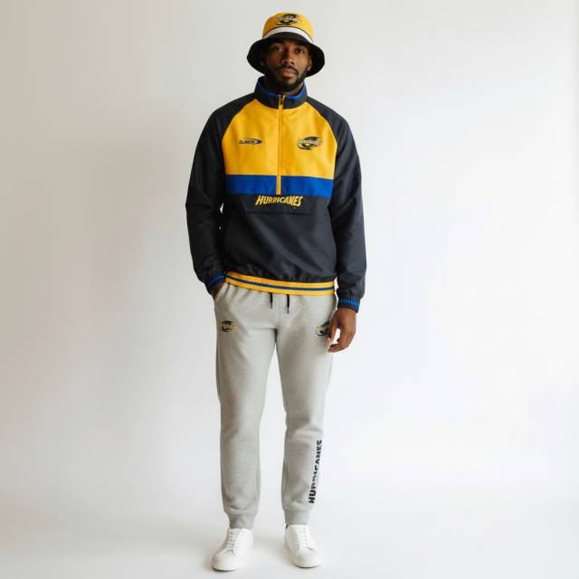 ・【トレンドの1/2 ZIP(アノラック)スタイルに、腹部の「HURRICANES」ロゴがアイコニックなアクセント。スッキリとした現代的なシルエットは、デニムやジョガーパンツとも相性が良く、街中でも洗練された印象を演出。】