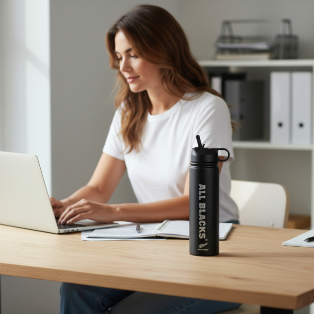 オールブラックスのロゴが入った、アクティブなライフスタイルに欠かせないステンレス製ドリンクボトルです。