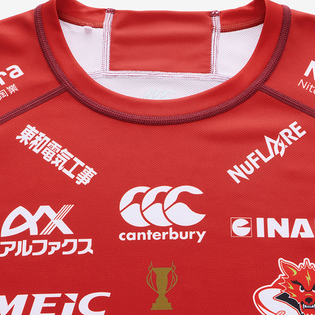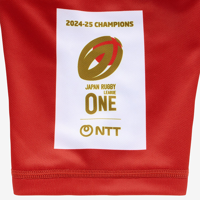 2025-26シーズンのジャージーには、王者のみが許される優勝カップを胸元に刻み、左腕にはゴールドに輝くリーグワンロゴが連覇の証として輝きます。